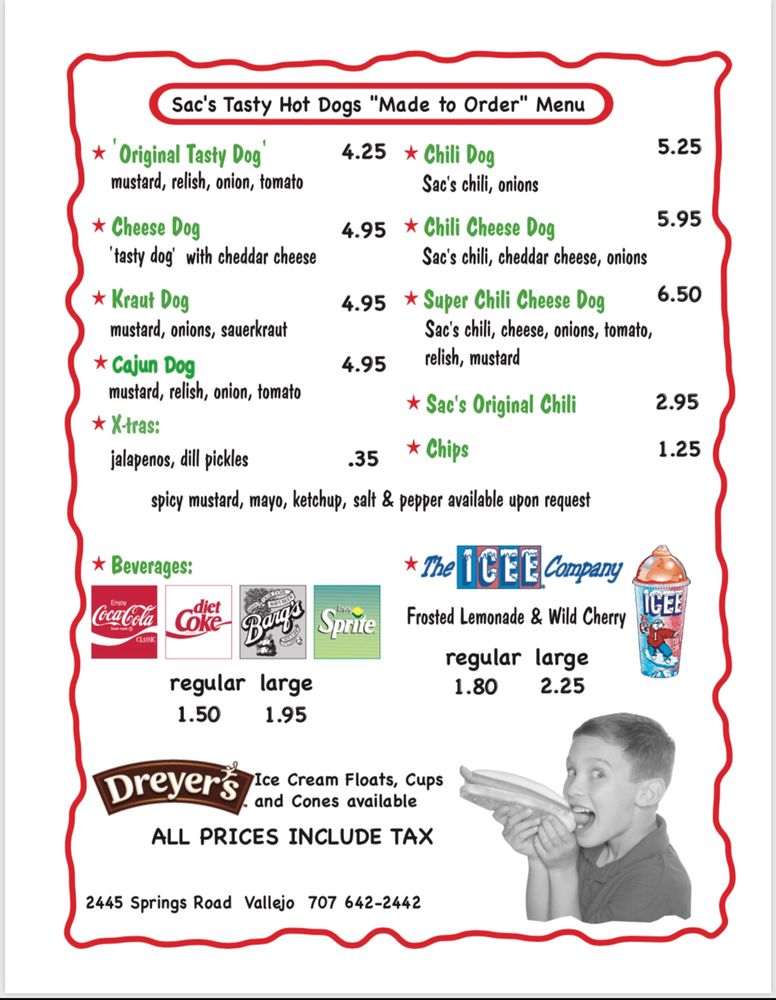 Sac’s Tasty Hot Dogs Menu (Update 2025)